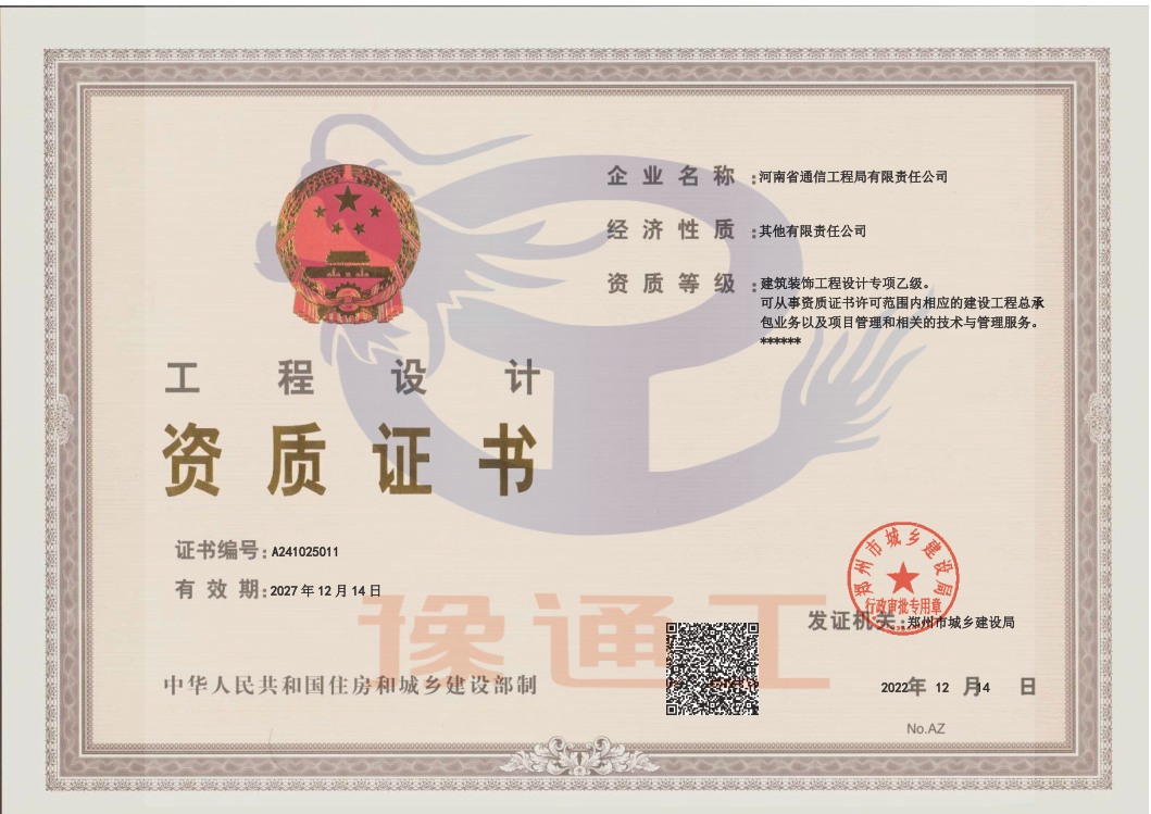 電子通信廣電行業(yè)(有線通信、無線通信)專業(yè)設(shè)計(jì)甲級(jí)